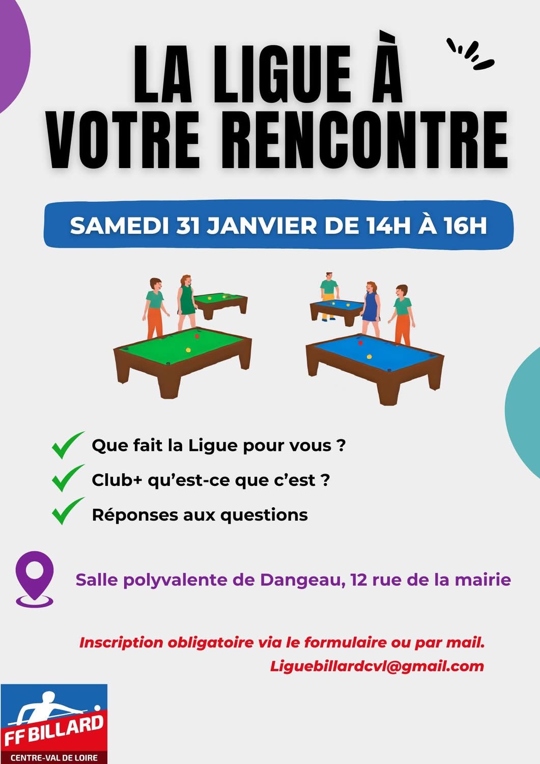 Vous êtes ici : Accueil CARAMBOLE Compétitions Individuelles Actualités La LBCVL à votre rencontre La LBCVL à votre rencontre share with Whatsapp powered by social2s